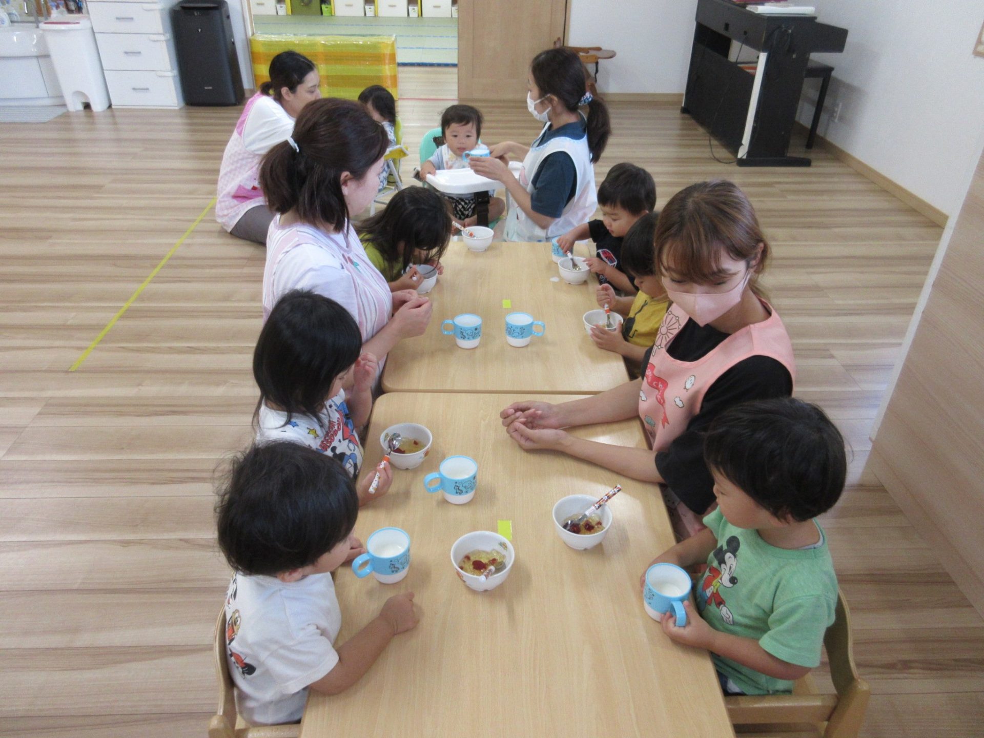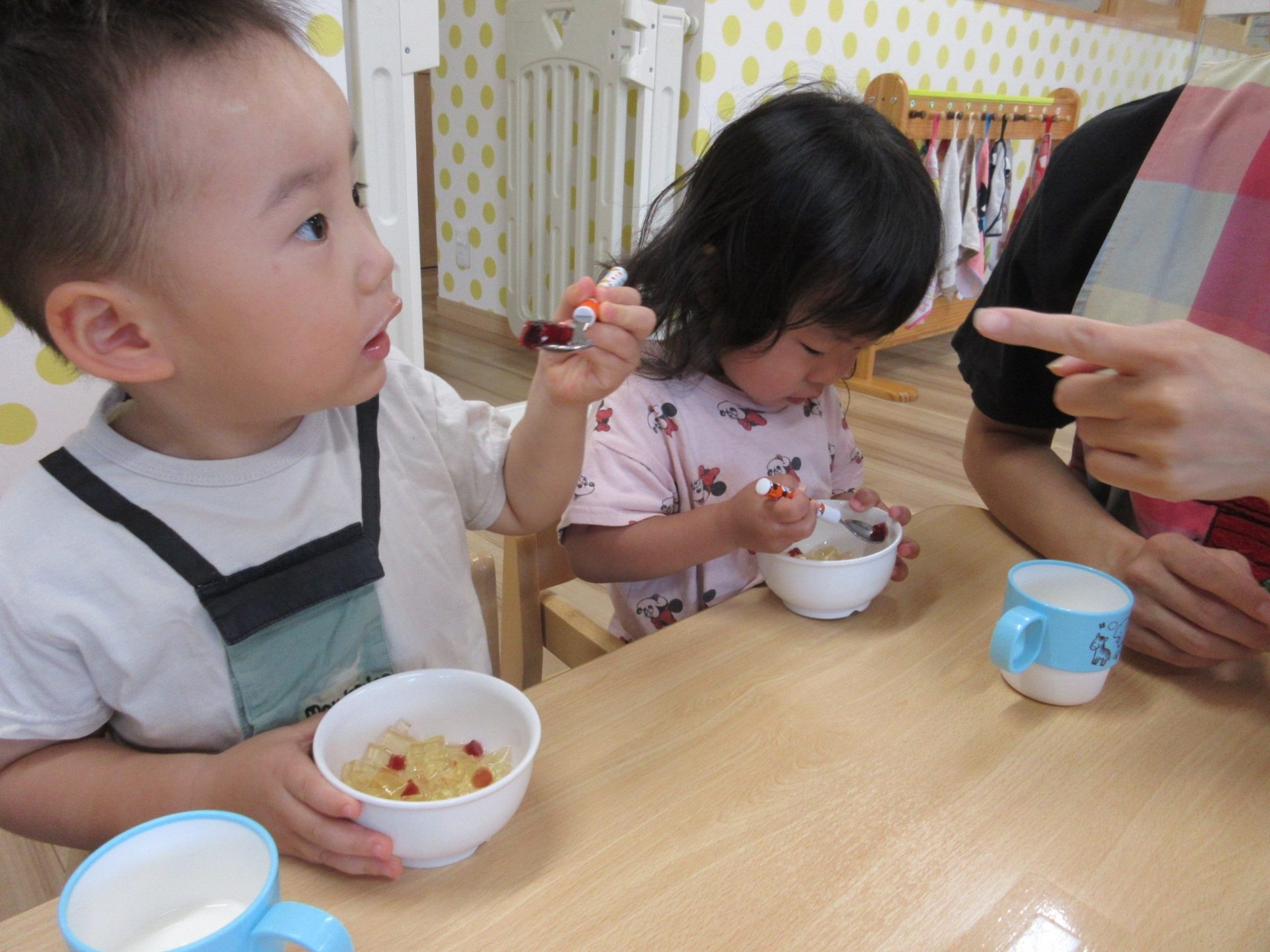 可愛いゼリーを見て、子どもたちはとっても嬉しそう❤😆おかわりもたくさんされてましたよ😁✨