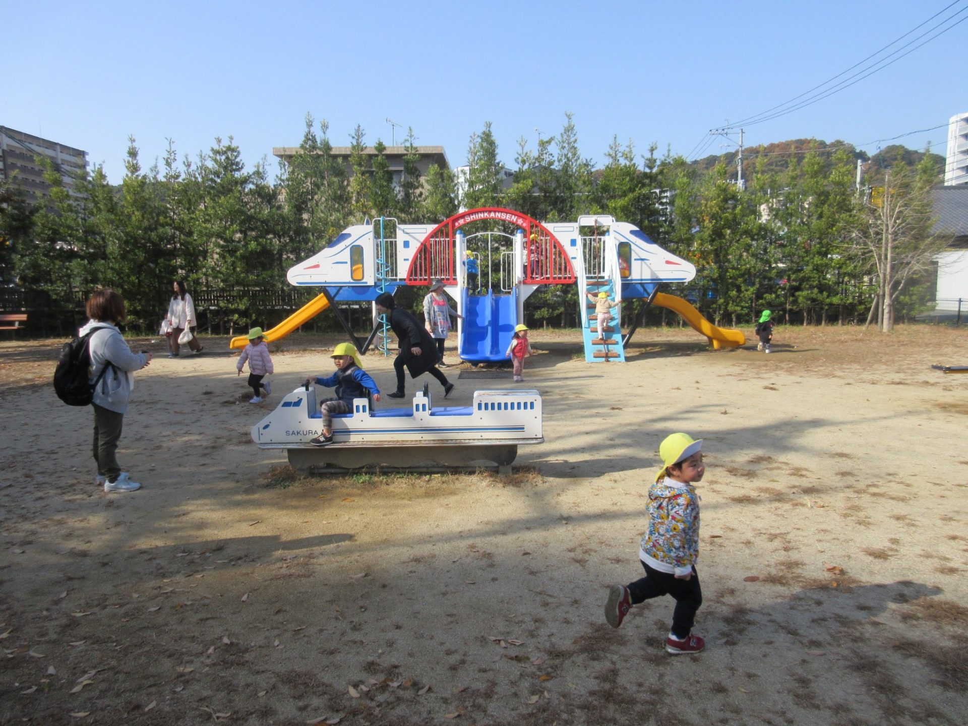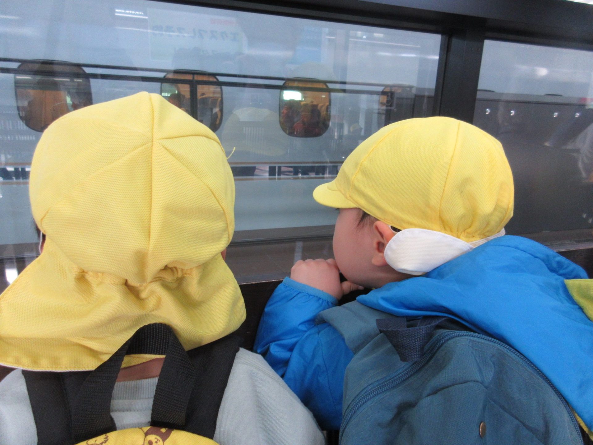 こっこ組(2歳児)🐔さんはJRに乗って、春日3丁目おてもやん公園に行きました🎵西熊本駅から電車に乗り、熊本駅で新幹線🚄見学をしたあと、おてもやん公園で遊び、お弁当をいただきました🤗