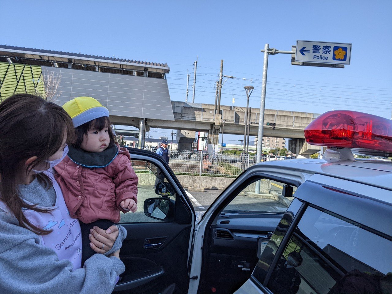 たまご組(0歳児)🐣さんは西熊本駅前交番に行き、パトカー見学を行ったあと、刈草中央公園で遊び、お弁当をいただきました🤗