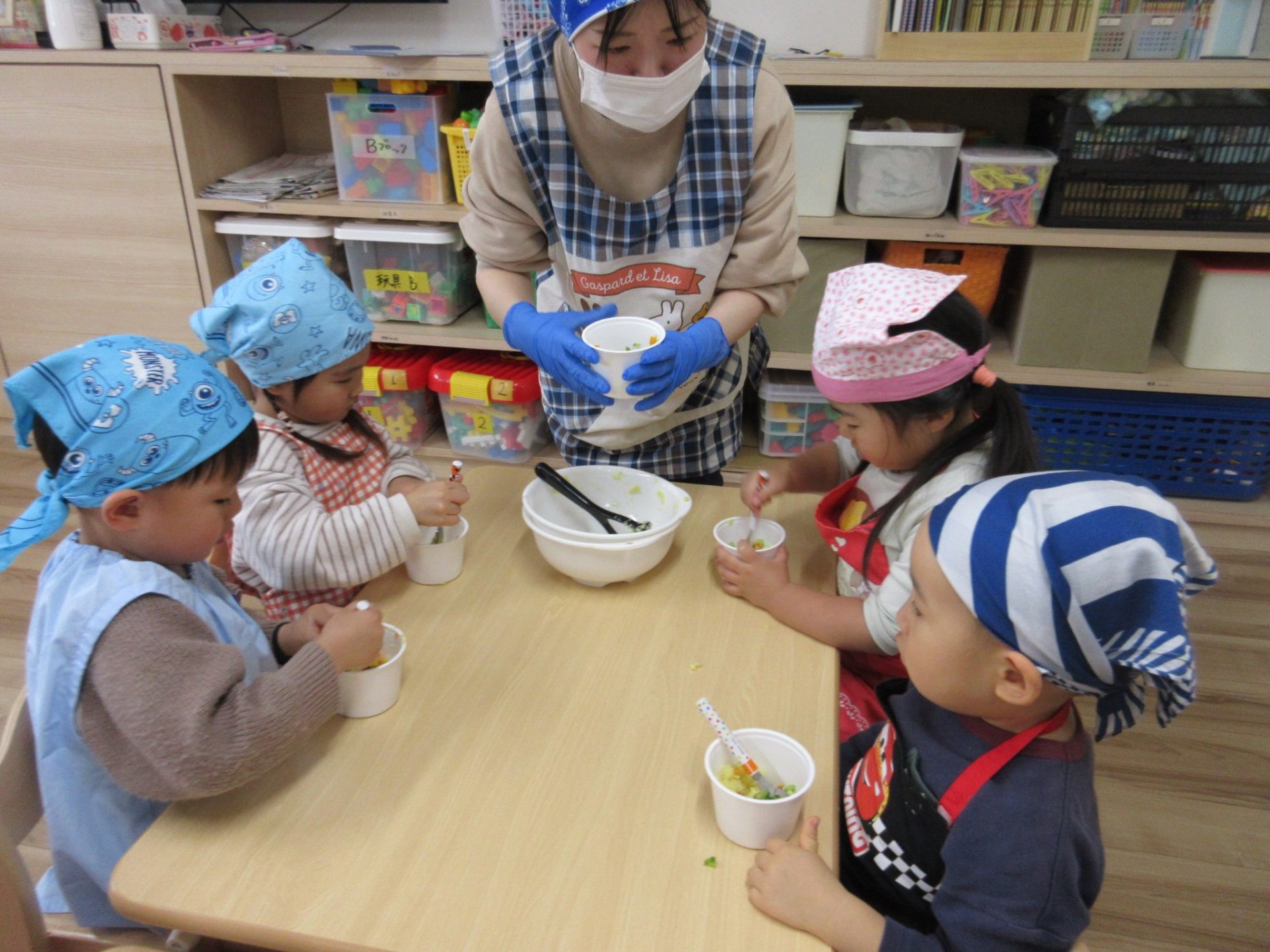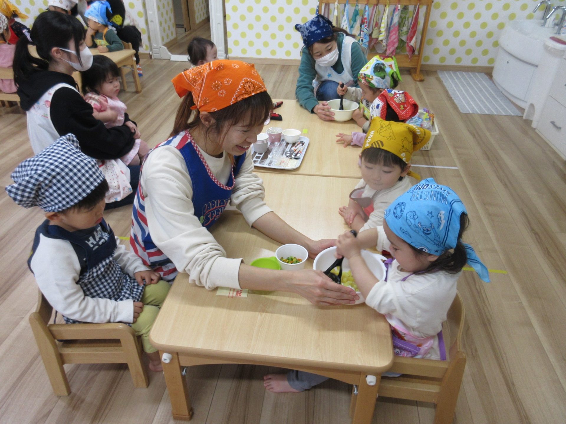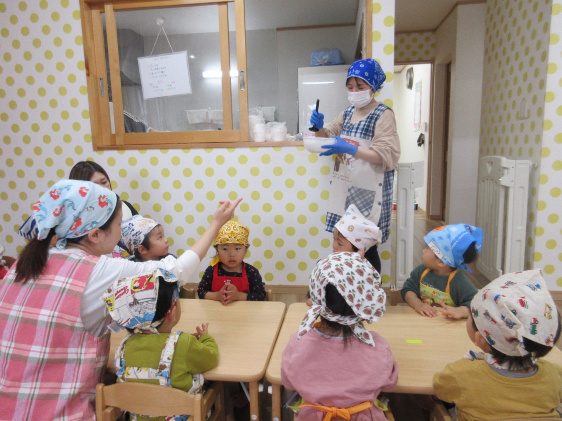 保護者の皆様、エプロンとバンダナのご準備、ありがとうございました✨✨