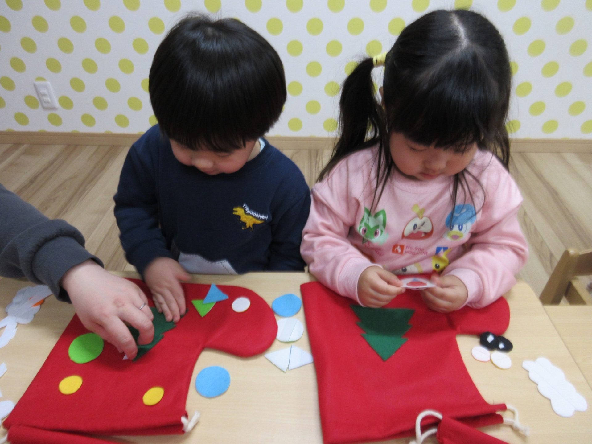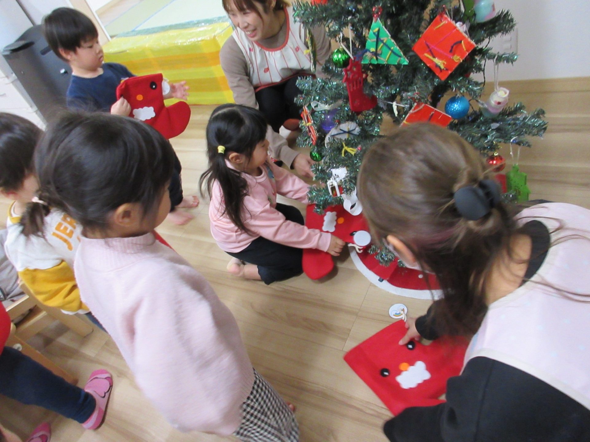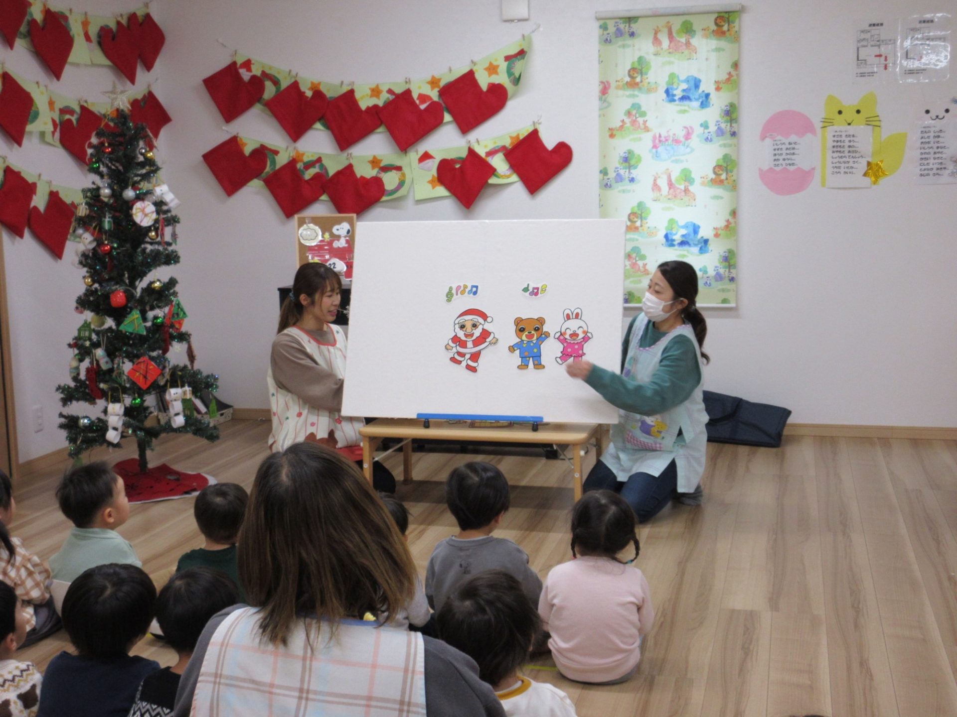 パネルシアターを見たり、クリスマスブーツを作ったり、クラス発表も行いましたよ。