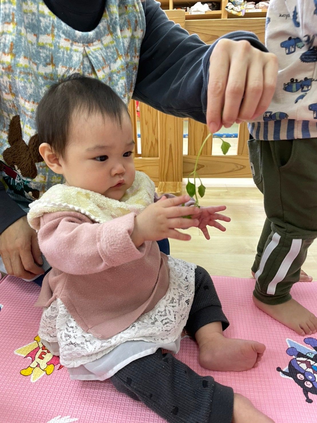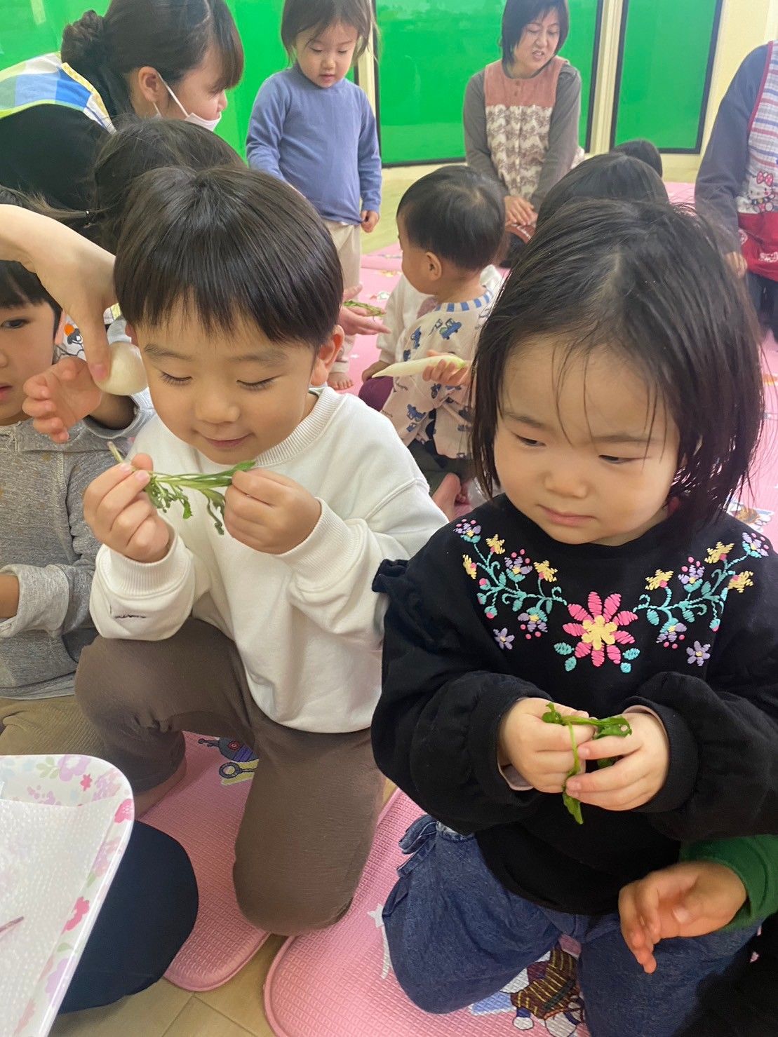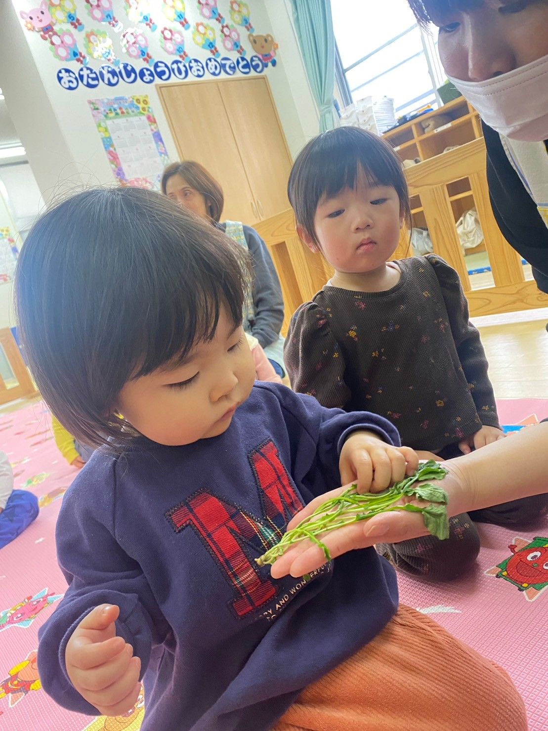 まずは、春の七草をみんなで触ってみます…🤗
