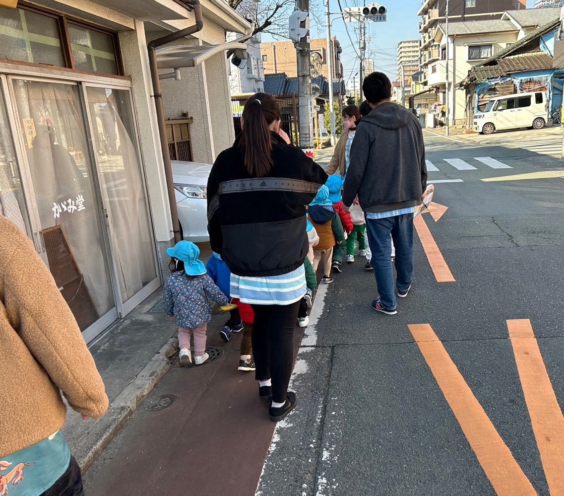 紙芝居を用いて避難の仕方を知り、第一避難場所まで避難しましたよ(^^)