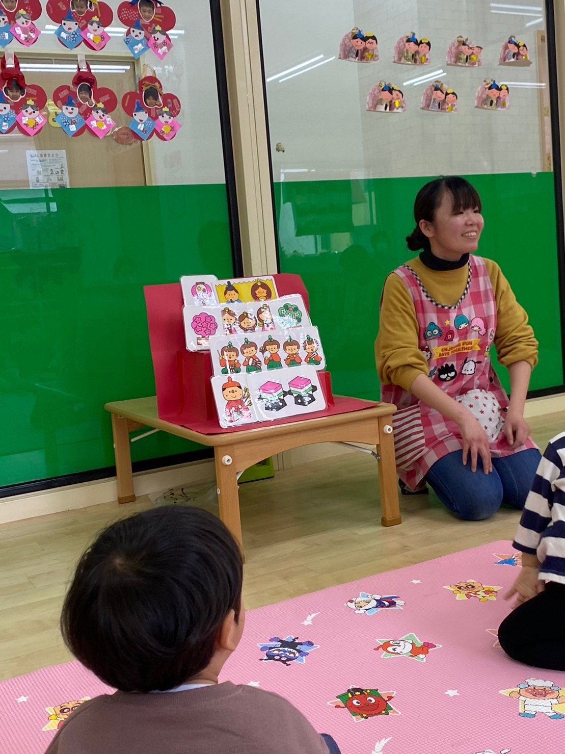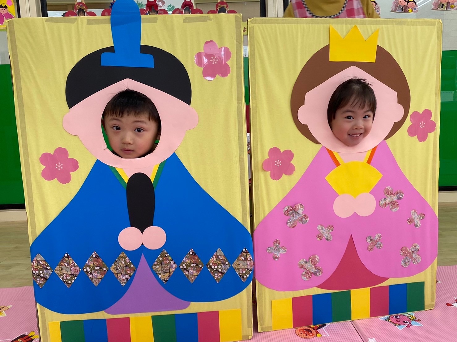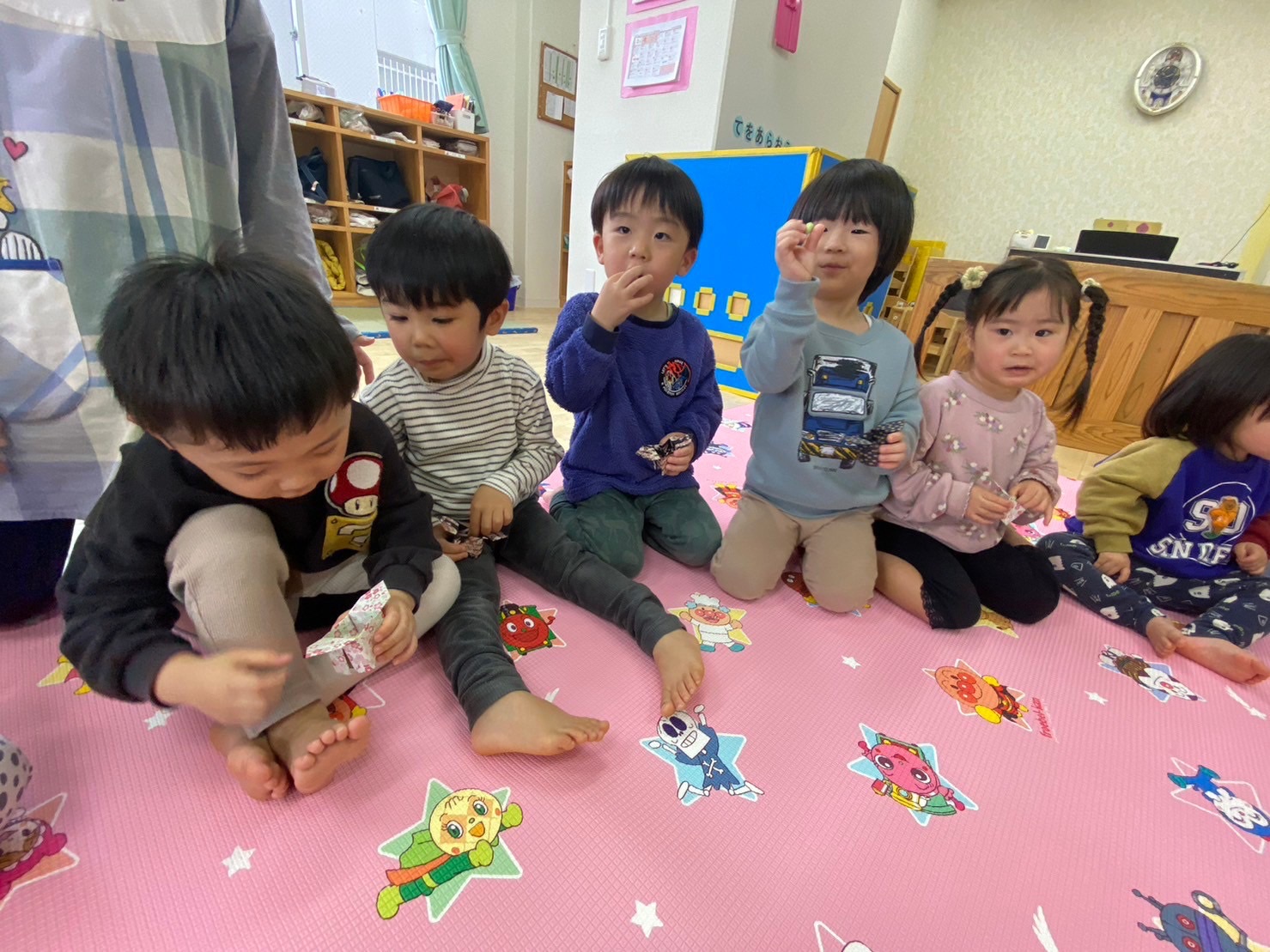 保育者のパネルシアターや、子どもたちみんなでひなあられを食べたり、とても楽しい時間をすごすことができました♪