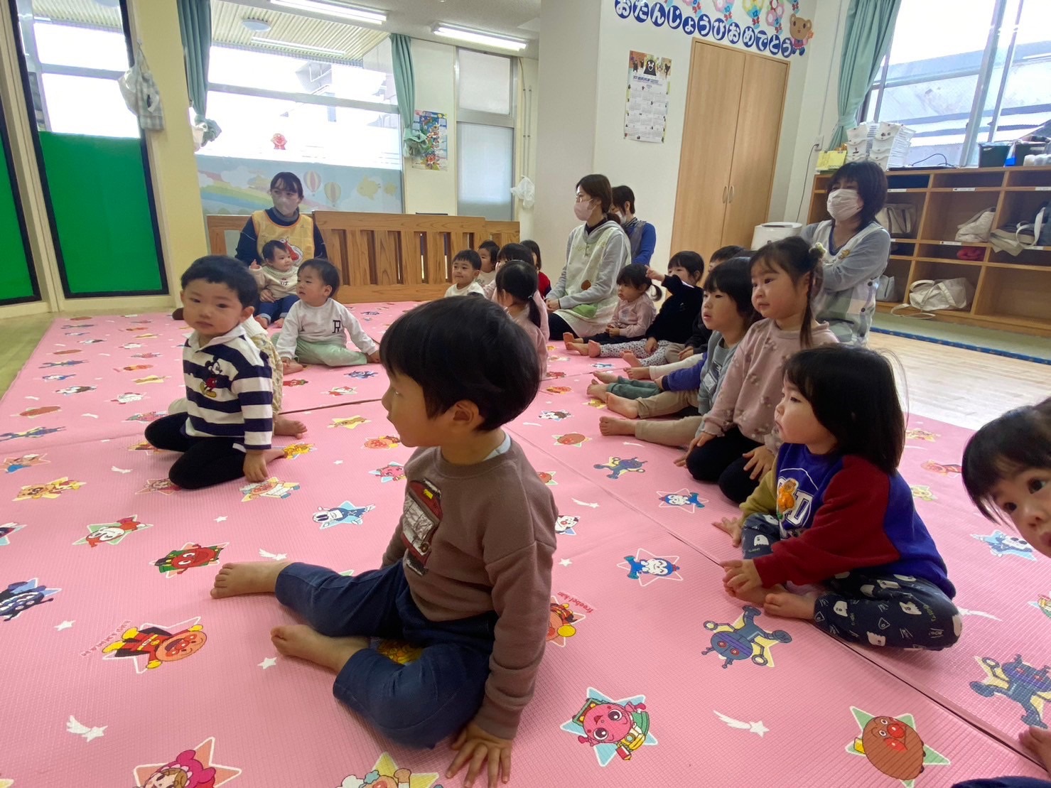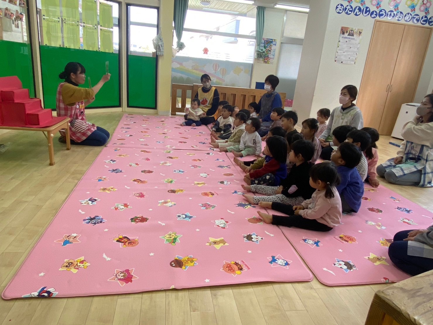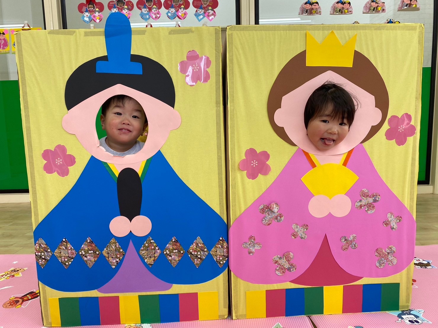 保育者のパネルシアターや、子どもたちみんなでひなあられを食べたり、とても楽しい時間をすごすことができました♪