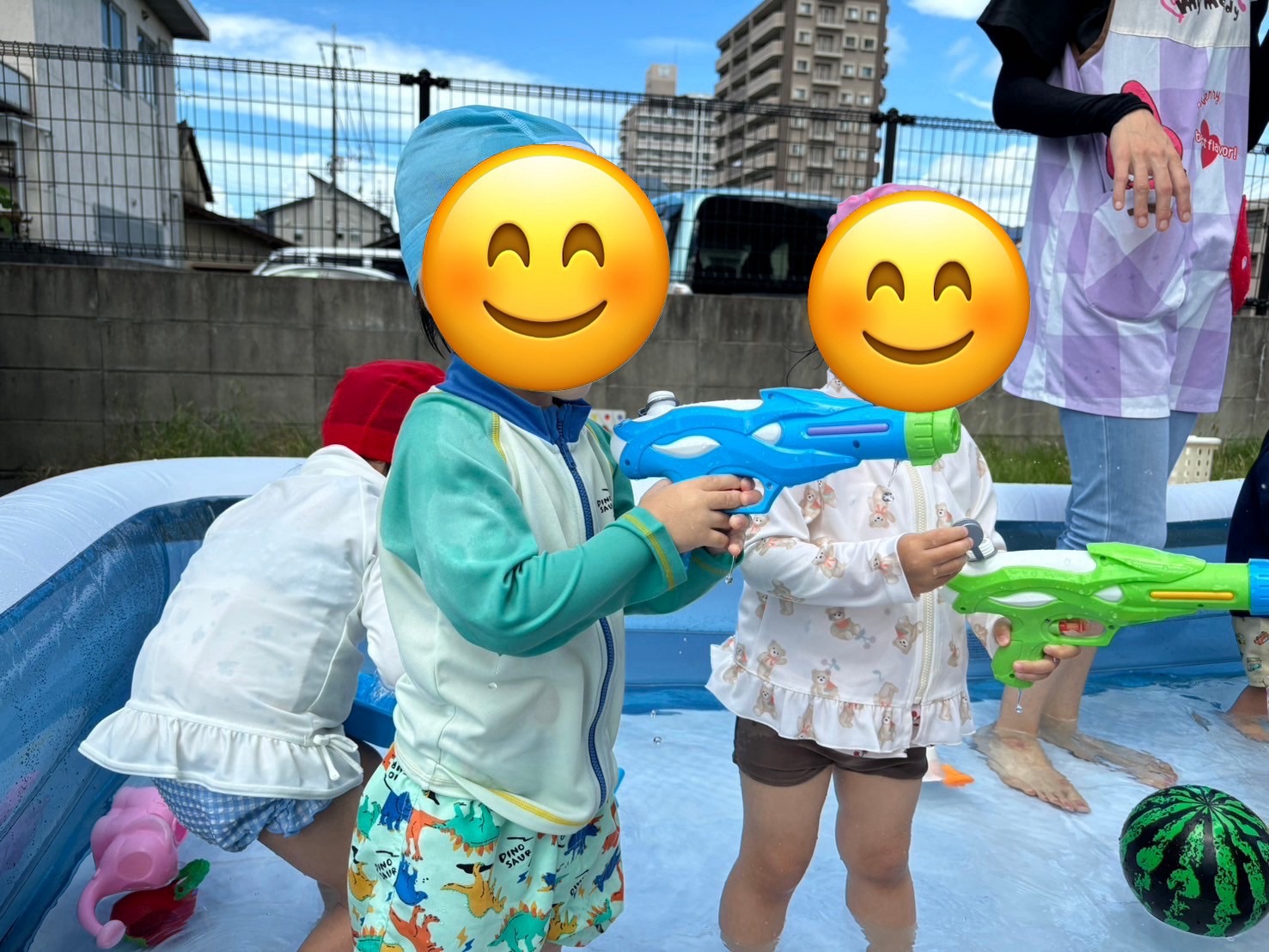 今日から水遊びと沐浴が始まりました(๑>◡<๑)楽しみにしていたようで保育者に「プールする?」と朝から尋ねていたお友だちもいましたよ♡