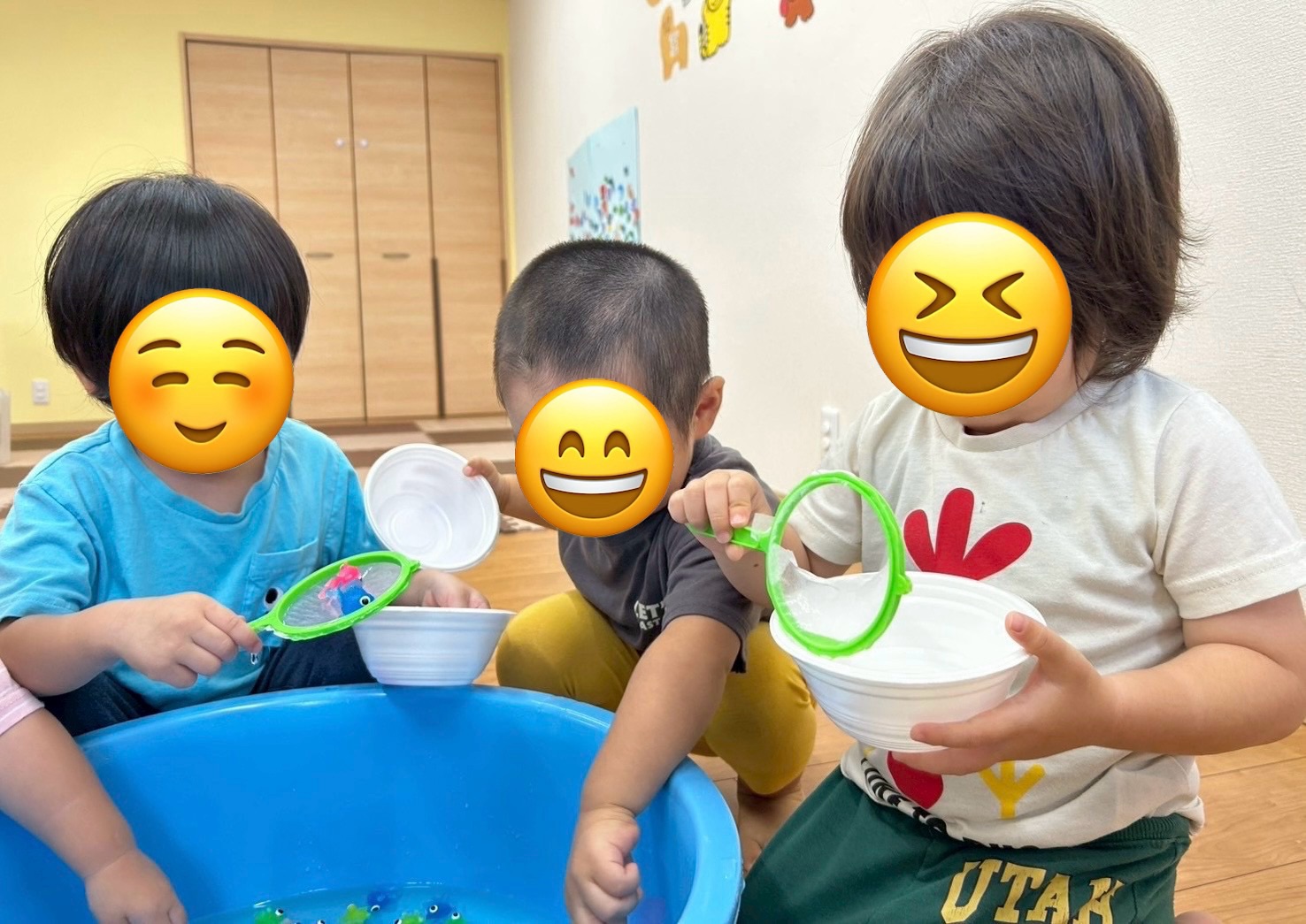 今日は2歳児クラスのお友達は金魚すくいをして遊びました(^O^)