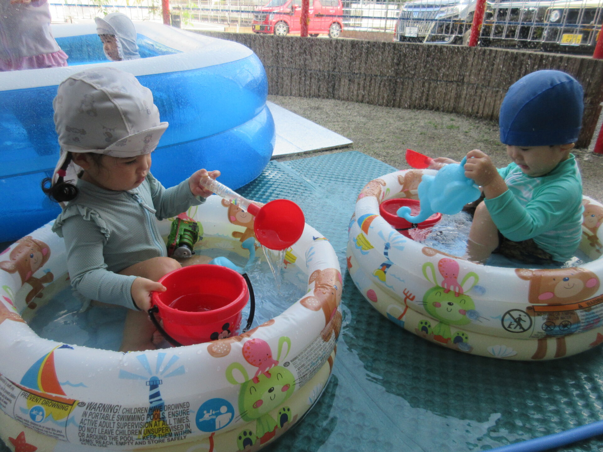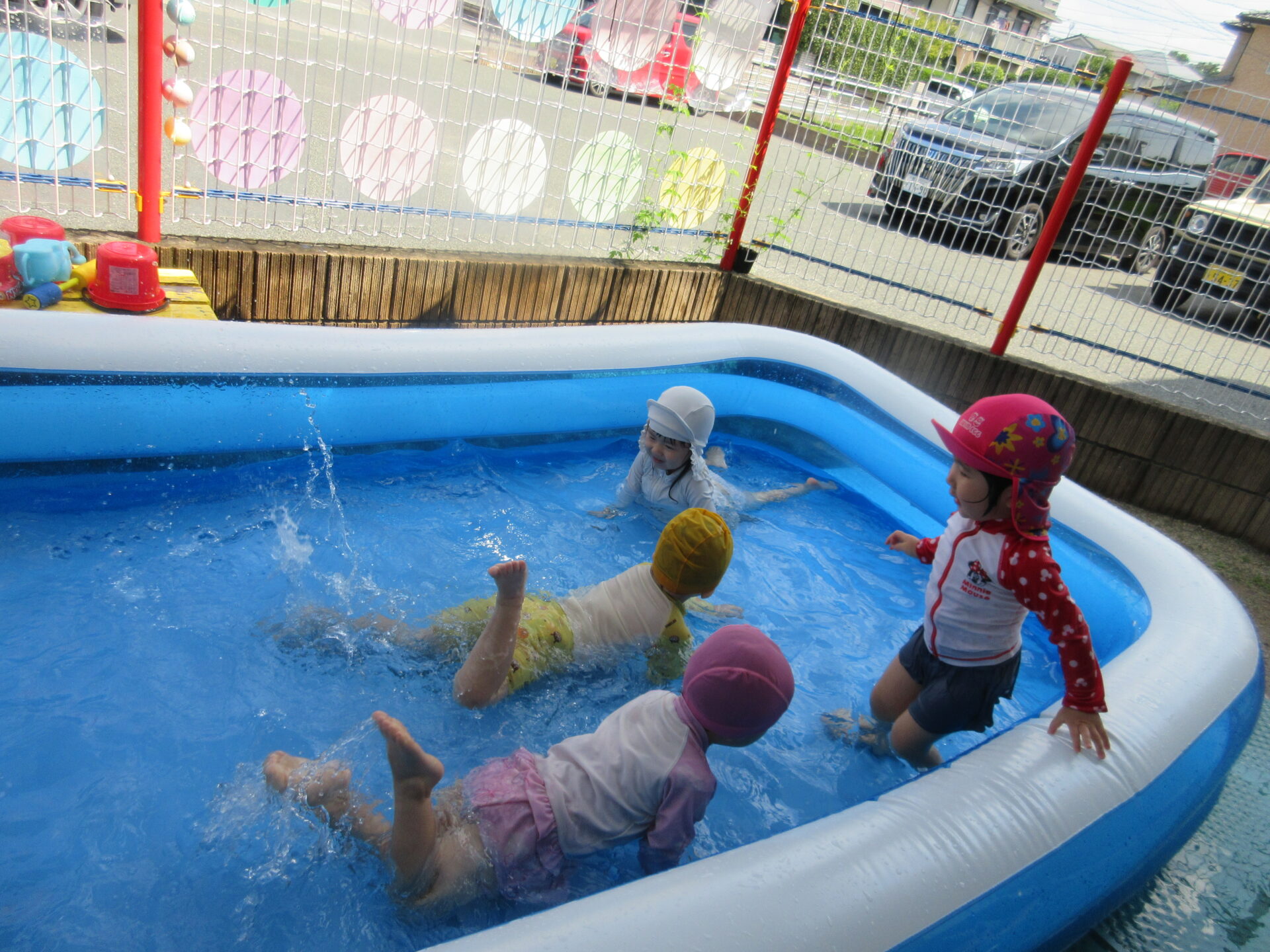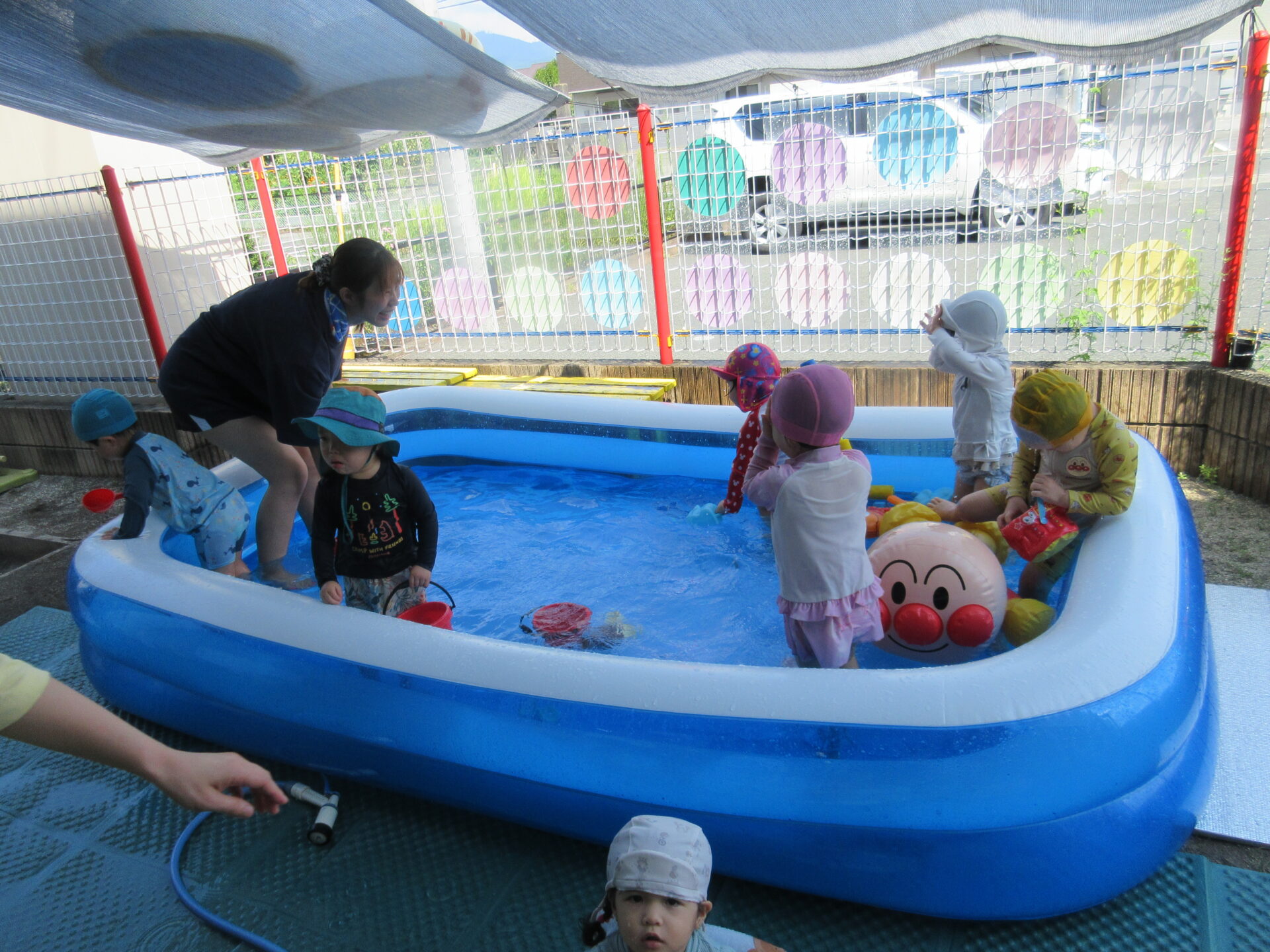 こんにちは。力合・ひまわり保育園です。今年のプールも今週でおしまいとなり、最終日もみんなで楽しく遊びました。「お水って冷たくて気持ちいいね!」「お友だちや先生と水鉄砲して楽しかったね」などなどたくさんのことを感じてくれました。また、昨年怖かったお友だちも今年は上がりたくない!!と言ってくれたりたくさんの成長も感じさせていただきました。皆で楽しく安全にできたことが良かったです。