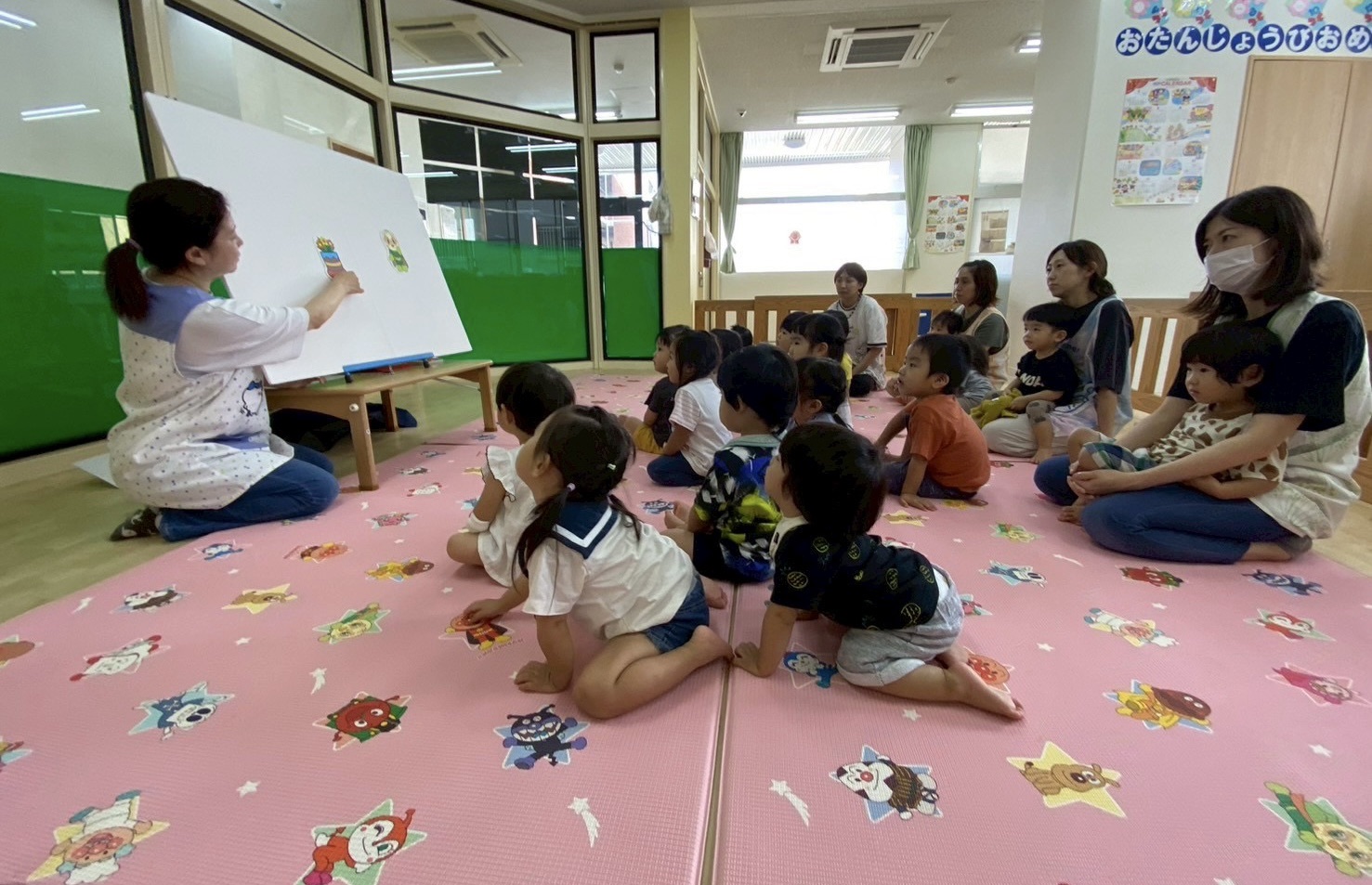 パネルシアターは子どもたちが大好きなアンパンマンのお話でした。