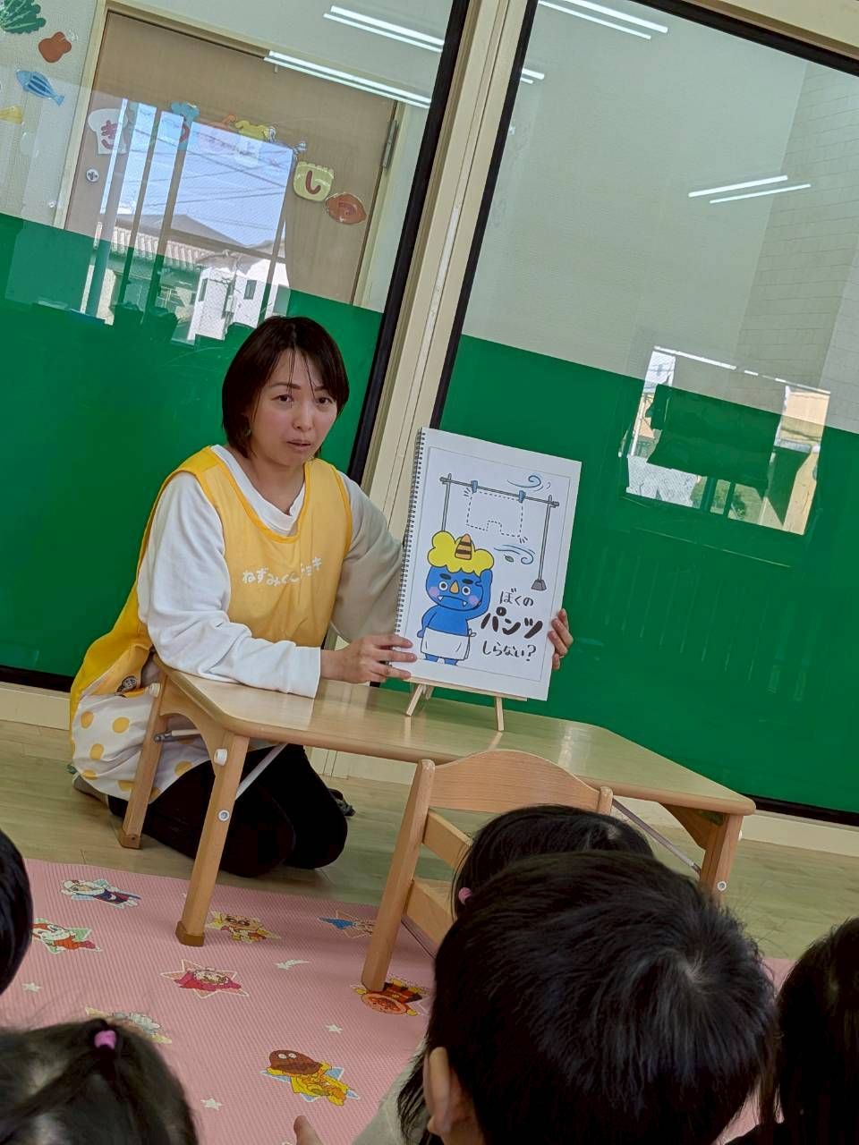 保育士の出し物は、スケッチブックシアター『ぼくのパンツしらない❓️』でした😊