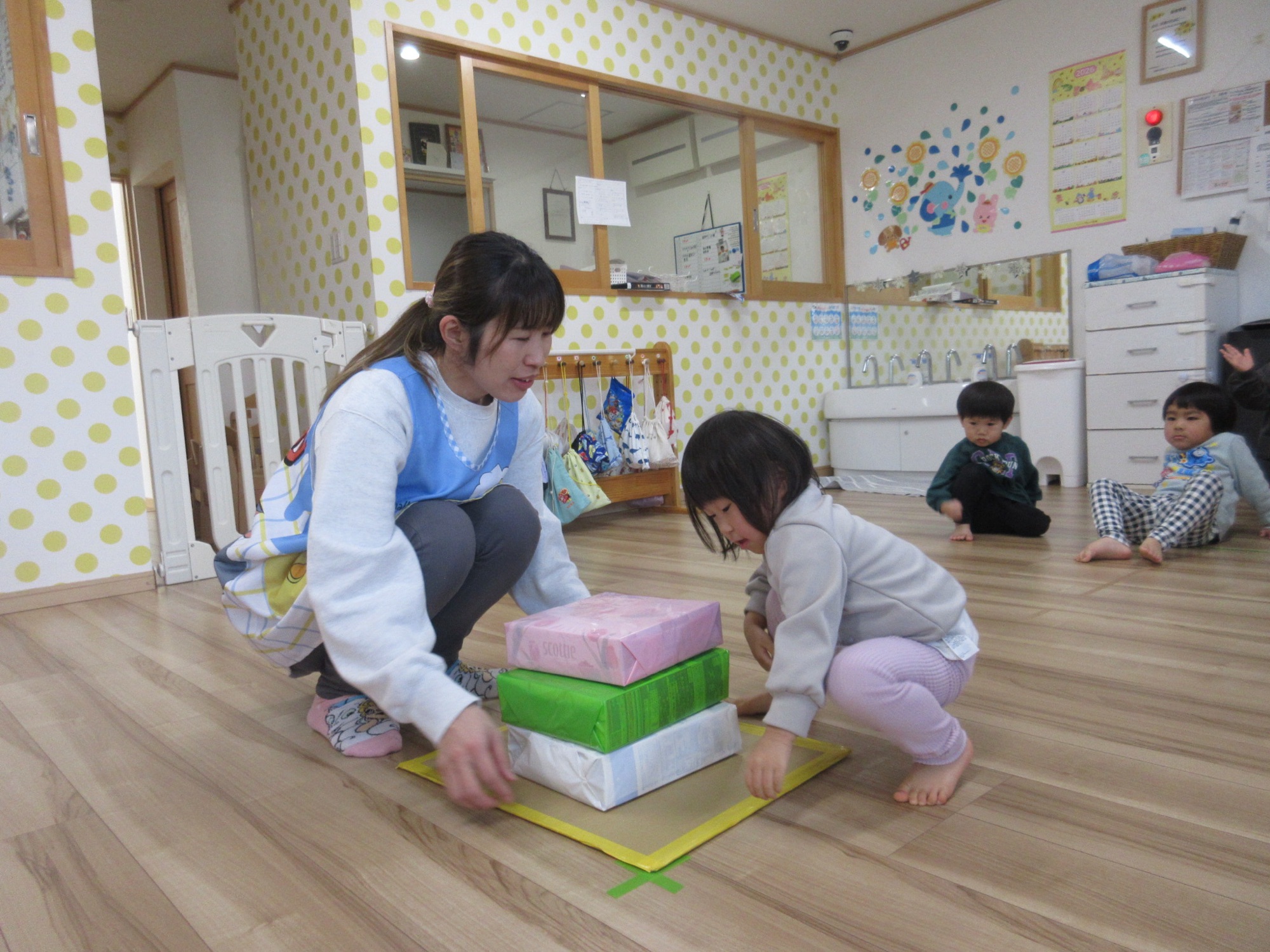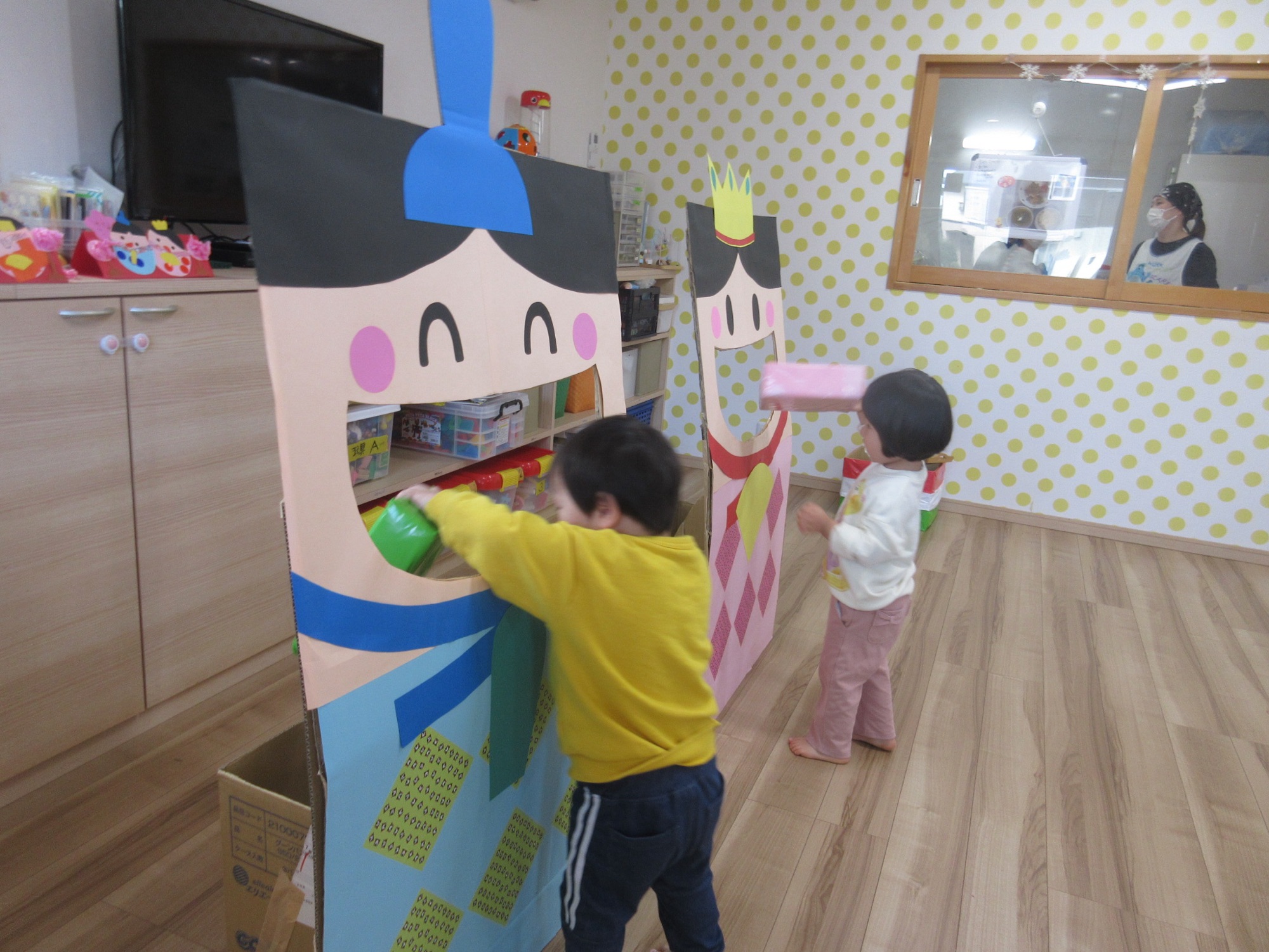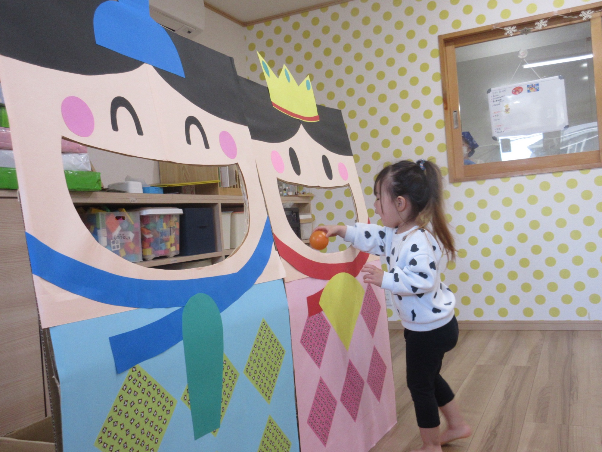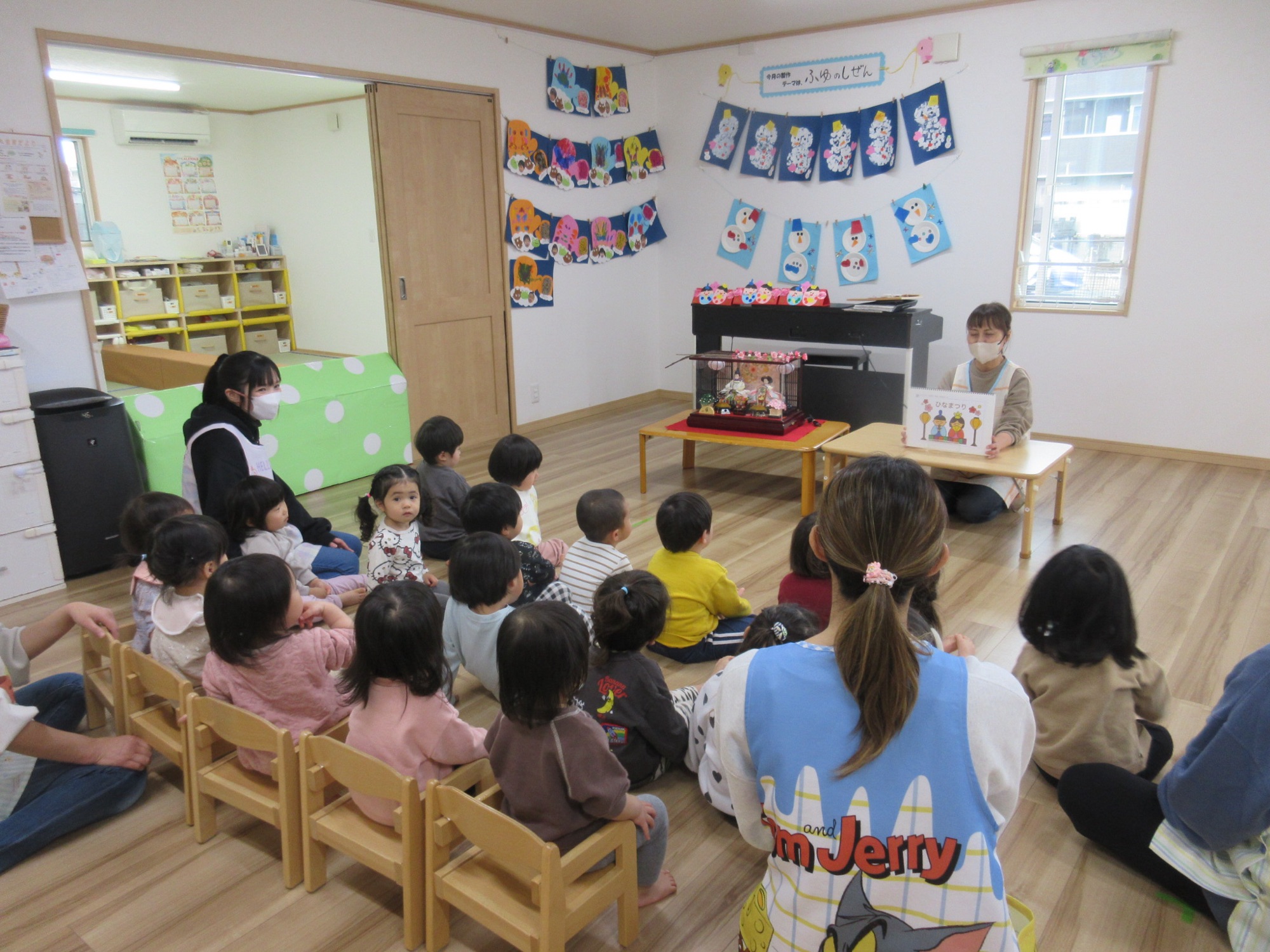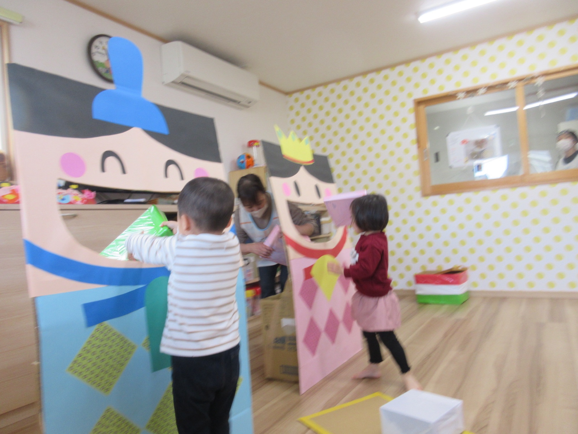 スケッチブックシアターでのお話を聞いたあとひなあられ運びにひしもち運びゲームをして楽しみました。お子様の健やかな成長をねがっています(*´꒳`*)