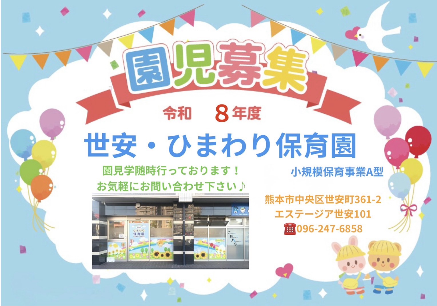 世安・ひまわり保育園では、令和8年度の園児を募集しております!