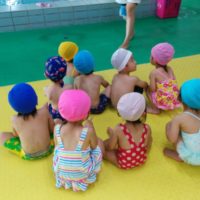 こんにちは! 2歳児のみ夏の間、力合ひまわり保育園と合同でスイミング教室に参加することになりまし …