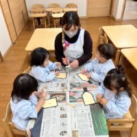 こんにちは♪世安•ひまわり保育園、もも•すみれ組です! 今日は1月の製作を行いました☺︎ 花紙を …