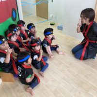今日のぱんだグループさんは 『忍者ごっこ』をしました! まずは忍者に変身✨✨ しゅ …