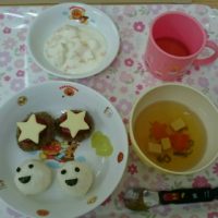 白坪ひまわり保育園です! 今日の献立は、お誕生日特別メニューでした😆 子どもたちが大好きなハン …
