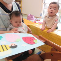 こんにちは😊力合·ひまわり保育園です🌻 今日は誕生会で大型絵本に誕生児の自己紹 …