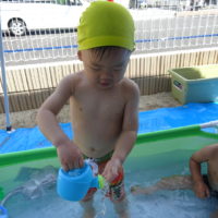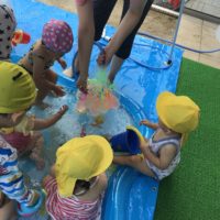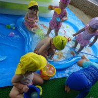 こんにちは!力合園の河元です。夏のあそびはプールに限りますね(^^♪今日は最近大流行の一度に大量生産できる水風 …