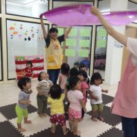 こんにちは! 2歳児のみ夏の間、力合ひまわり保育園と合同でスイミング教室に参加することになりまし …