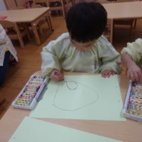 こんにちは! 昨日と今日で11月の製作をしました。 先日の遠足でお弁当を食べたということで、今月はお弁当バスの …