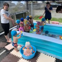 こんにちは! 世安・ひまわり保育園です。 今日は、保育園で水遊びをしました! 水遊び大好きな子どもたち …