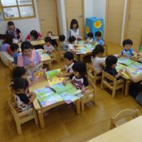 こんにちは! 今日は月刊絵本を見ました(^^) みんな絵本が大好き! 真剣な表情でページをめくったり シール貼 …