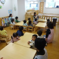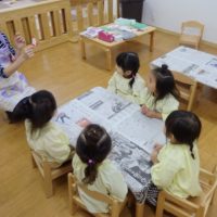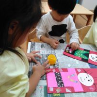 こんにちは(^○^) 世安・ひまわり保育園です。 今日は、こあらグループ(2歳児)さんは、七五三製作で千歳飴袋 …
