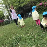 こんにちは! 今日は世安公園に遊びに行きました✨ 公園に咲いていたシロツメクサの花を集めて 保育者と冠や指輪作 …